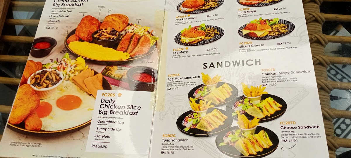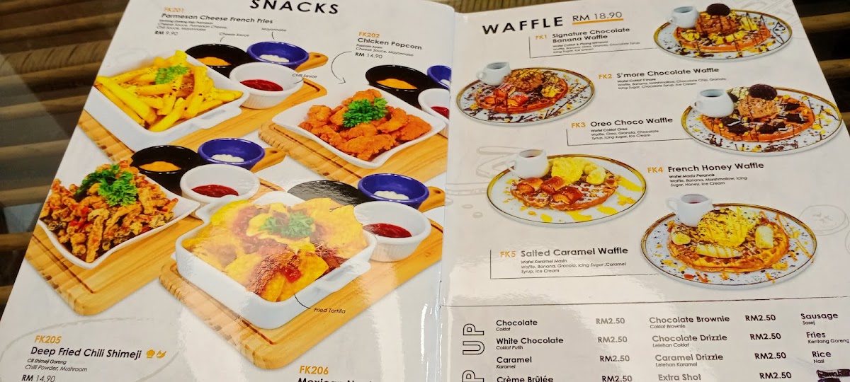 Beverages include coffee and other drinks, with notable highlights like Strawberry Soda. The menu accommodates quick orders as well as casual dining occasions, providing a range of Western-style dishes alongside coffee and light bites.
